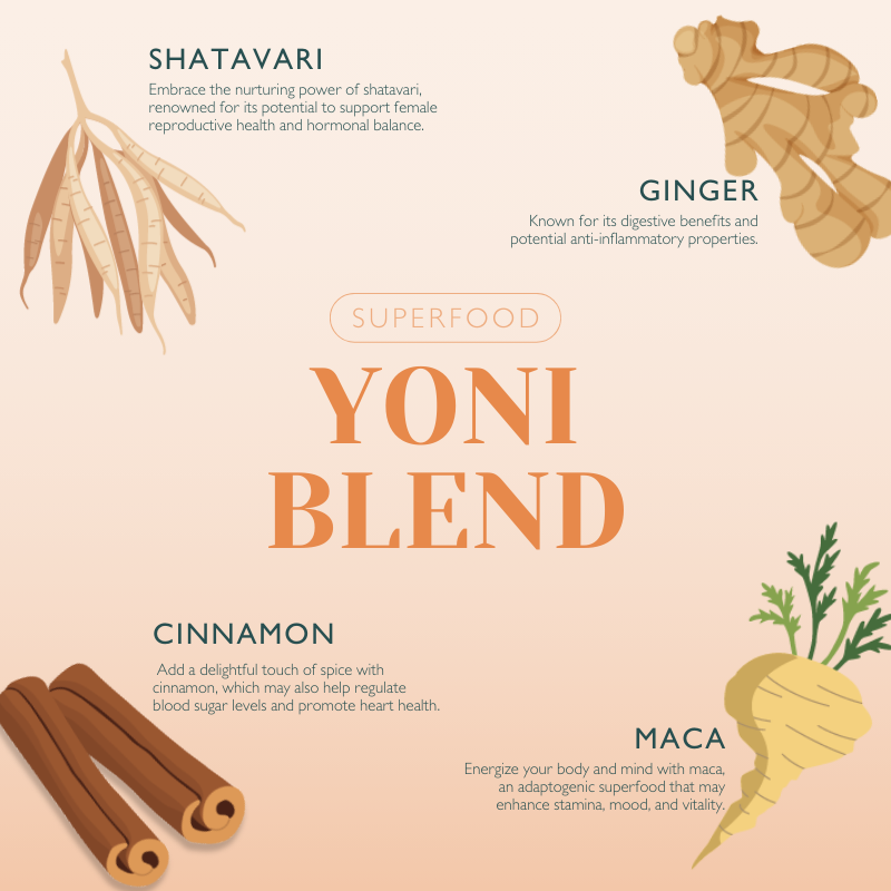Discover a harmonious blend of nature's gifts in "Yoni," a superfood blend designed to empower your vitality and well-being.